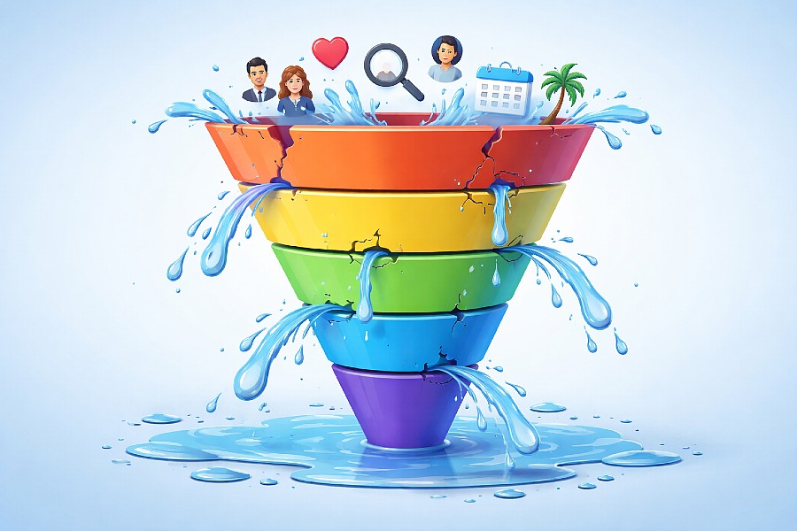The question now is about which of these leaks are happening on your site? And is your travel content, SEO/GEO, PPC leads, and email messaging feeding into your conversion problem? As you investigate your traffic sources, landing page success, content immersion, and visible conversion behavior, the picture should become clearer.